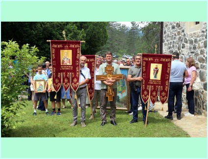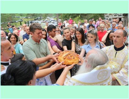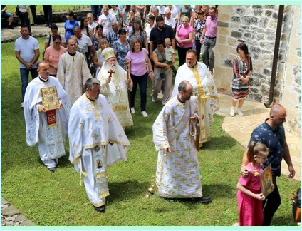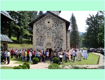 Манастирски храм био и премален и претјесан да под своје сводове прими све оне који су се данас ''слили'' у ову древну светињу Српског народа. Након свете архијерејске литургије обављена је литија око светог храма, испред храма благословен славски обред славских дарова - кољиво и славски колач. Бесједу о празнику Силаска Светога Духа одржао је испред светога храма Високопреосвећени Господин Хризостом.