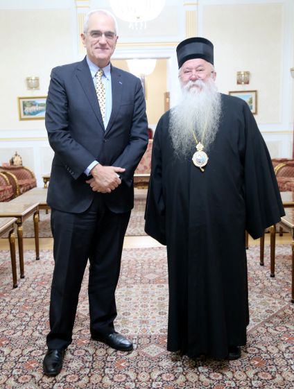 МИТРОПОЛИТ ХРИЗОСТОМ ПРИМИО У НАСТУПНУ ПОСЈЕТУ АМБАСАДОРА РЕПУБЛИКЕ ГРЧКЕ
