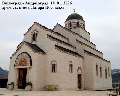 Велики Господњи празник Богојављења и ове је 2026. године, као и претходних година, свечано и торжествено прослављен у Вишеграду. Свету архијерејску литургију св. Василија Великог служио је Високопреосвећени Господин Хризостом, архиепископ сарајевско-сребренички и митрополит дабробосански у предивном храму Светог кнеза Лазара у Андрићграду. Високопреосвећеном Господину Митрополиту саслуживали су високопречасни протојереји-ставрофори: Александар Топаловић и Рајко Цвјетковић, високопречасни протојереји Михаило и Средоје Андрић те ђакон Василије Пајовић.