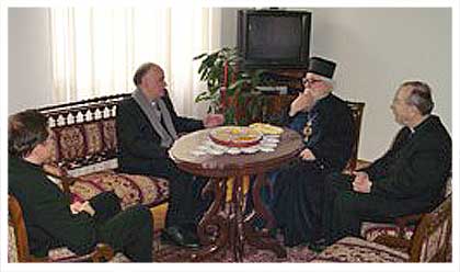 У отвореном и веома срдачном разговору, ријечи је било о дијалогу између православне и римокатоличке Цркве. Обострано је закључено да православни и римокатолици имају толико тога што их спаја, те да заједништво које већ постоји треба очувати, али истовремено радити и на пуном евхаристијском јединству. Надбискуп Ди Ерико изјавио је да на темељу искуства, није довољно вјерницима само проповиједати заједништво, него и показати им то заједништво у пракси, честим сусретима између православног и римокатоличког свештенства. Надбискуп Ди Ерико је исказао посебно интересовање за историјатом и данашњим положајем Српске православне цркве и њених епархија у Босни и Херцеговини, те бројем и положајем православних вјерника, свештеника, храмова, манастира и богословских школа у Митрополији дабробосанској. Високопреосвећени Митрополит се г. Амбасадору срдачно захвалио на изузетно доброј сарадњи и на свему што је чинио за Српску Православну Цркву у Босни и Херцеговини, те нагласио да је Црква у њему увијек видјела великог пријатеља. Потом се повео разговор о актуелном стању у земљи, као и о положају и тешкоћама Српске Православне Цркве. Заједнички је закључено да је ситуација у земљи још увијек нестабилна, али је изражена нада у бољу будућност, као и да ће се многи проблеми ускоро почети рјешавати, на добро свих народа који живе у њој. На крају разговора, Високопреосвећени Митрополит Николај је Амбасадору Вукићевићу пожелио много успјеха и среће у његовом даљем раду и каријери, поклонивши му копију чудотворне иконе Пресвете Богородице Чајничке.