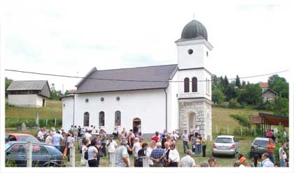 Свету литургију су, осим надлежних свештеника, служили и парох соколачки Борис Бандука и парох војковићки Вихор Клопановић. На крају литургије обављен је славски обред, у оквиру којег је прочитано писмо од људи родом из овог краја који сада живе и раде у САД, Канади, Аустралији и другим земљама у свијету, а који су и кумовали овогодишњој слави храма. По окончању службе обављен је трократни опход око храма, а барјаке су носили Бојан Тешић, Сладомир Лалушић и Миломир Витор. На крају опхода традиционално је обављен и мали помен на гробовима свештеника Ристе Крстића, за чијег је службовања саграђена црква, и страдалих у Другом свјетском рату. Ово је седма година откако се у цркви врши славски обред, а пета откако је обновљена и освећена и у њој се служе свете литургије. Храм је саграђен и освештан 1886. године. Запаљен је почетком јуна 1992. године, а обновљен 2008. добровољним прилозима бивших парохијана који живе у Аустралији, Америци и Канади.