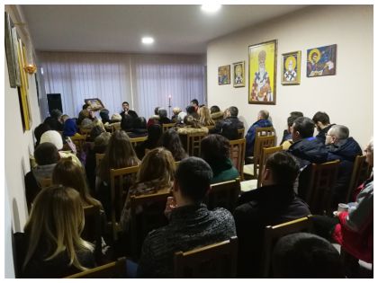 25.03.2018. ПРЕДАВАЊА У ПАРОХИЈСКОМ ДОМУ НА ВЕЉИНАМА У двије потоње недјеље, 18. и 25. марта 2018. године, у саборишту парохијског дома на Вељинама, протојереј Данило Дангубић и јереј Дражен Делић одржали су предавања под насловима „Радост поста“ и „Сверадост Васкрсења“. Прошавши кроз теме, како припремних тако и седмица самог Часнога поста, у својим излагањима свештеници су наглашавали теолошки и јеванђелски осврт на догађај Васкрсења Христовог, на сами смисао радости свих Хришћана, Христову побједом над смрћу. Изузетно посјећена предавања, у топлој атмосфери заједничарења, била су прилике за жив разговор на општу радост свих присутних. http://svetivasilije-is.org/predavanje-u-parohijskom-domu-na-veljinama/ http://svetivasilije-is.org/6528-2/ ђакон Душко Којић