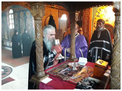 Прва Света Литургија у новообновљеном Манастиру, у више него скромним условима - али богата благодаћу Духа Светога - одслужена је на празник Прображења Господњег ове године. Господ, који се непрестано стара за Цркву своју, наградио је Манастир првим чудом. Иако нико није ни знао да је Манастир обновљен, да је дошао монах и да ће бити богослужење, вођен Духом Светим - благочестиви народ, сабрао се у Манастиру да принесе жртву и благодарење Господу.