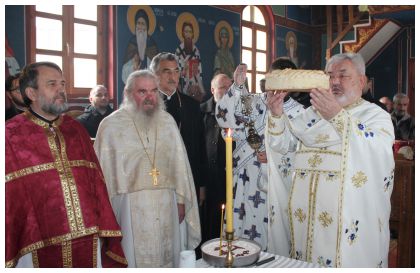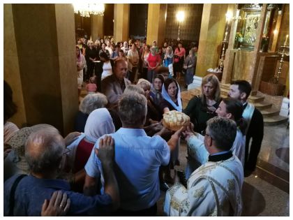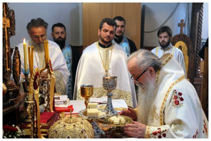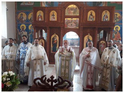 У Евхаристијском сабрању одслужисмо службу Божију у храму Успења Пресвете Богородице, а потом у присуству великог броја наших вјерника, извршисмо велико освећење воде.