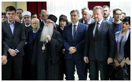 07.10.2017. ПРИЈЕМИ У ЗГРАДИ МИТРОПОЛИЈЕ ДАБРОБОСАНСКЕ У петак 06.10.2017. године у згради Митрополије дабробосанске у Сарајеву, Његово Високопреосвештенство Митрополит дабробосански Господин Хризостом примио Амбасадора Републике Француске у Босни и Херцеговини Његову Екселенцију Жилем Роусон (Guillaume Rousson) и директора њемачке организације Конрад Аденауер Штифтунг у Босни и Херцеговини, др Карстена Думела. 06.10.2017. МИТРОПОЛИТ ХРИЗОСТОМ ПОСЈЕТИО ХРАМ СВЕТИХ АПОСТОЛА ПЕТРА И ПАВЛА НА НИШИЋКОЈ ВИСОРАВНИ Његово Високопреосвештенство Митрополит Дабробосански Господин Хризостом посјетио је у уторак 09.10.2017.године храм Св. Апостола Петра и Павла на Нишићкој Висоравни, гдје је дочекан од стране продекана Богословског факултета у Београду протојереја-ставрофора др Драга Санда, протојереја Зорана Перковића и надлежног пароха јереја Божидара Тановића. 06.10.2017. МИТРОПОЛИТ ГОСПОДИН ХРИЗОСТОМ ПРИМИО У ЗГРАДИ МИТРОПОЛИЈЕ ДАБРОБОСАНСКЕ ШЕФА МИСИЈЕ ОСЦЕ-а У БИХ АМБАСАДОРА БРУСА БАРТОНА У четвртак 05.10.2017. године у згради Митрополије дабробосанске у Сарајеву, Његово Високопреосвештенство Митрополит дабробосански Господин Хризостом примио шефа мисије ОSCE-а у Босни и Херцеговини, амбасадора Бруса Бартона. 06.10.2017. МИТРОПОЛИТ ГОСПОДИН ХРИЗОСТОМ ПОСЈЕТИО РЕИСА ИСЛАМСКЕ ЗАЈЕДНИЦЕ У БиХ ХУСЕИНА ЕФ. КАВАЗОВИЋА Дана 05.10.2017. године Његово Високопреосвештенство Митрополит дабробосански Господин Хризостом посјетио је Реиса-л-улему Исламске заједнице у БиХ Хусеина еф. Кавазовића. 05.10.2017. ПОСЈЕТА МИТРОПОЛИТА ХРИЗОСТОМА НОВОМ ГОРАЖДУ - СОПОТНИЦИ Његово Високопреосвештенство Господин Хризостом посјетио је у понедељак 02.10.2017. храм Св. Великомученика и Побједоносца Георгија у Доњој Сопотници у Новом Горажду, изграђен 1446. године, чији је задужбинар био Херцег Стефан Вукчић Косача . 04.10.2017. БЕСЈЕДА МИТРОПОЛИТА ХРИЗОСТОМА У ФОЧИ Нека Вам је срећна и благословена нова Академска 2017/18. година. Након вишегодишњег релативно неусловног смјештаја Богословског факултета, божијом помоћу, али вашим трудом и залагање, те добротом добрих људи, ево, створени су адекватни услови за оптимално фукционисање ове наше Високе богословске школе, која треба да је свјетионик наше просвјете, али и понос наше Митрополије и нашег Народа. То очекујемо и надамо се да ћете наша очекивања и надања испунити. 03.10.2017. СВЕЧАНИ ПРИЈЕМ СТУДЕНАТА ПРВЕ ГОДИНЕ У ПРОСТОРИЈАМА БОГОСЛОВСКОГ ФАКУЛТЕТА У ФОЧИ Уприличен свечани пријем студената прве године, у просторијама Богословског факултета. Том приликом је сваком студенту по примјерак Светог Писма Новог Завјета уручио Високопреосвећени Митрополит Г. Хризостом, док су индексе Богословског факултета студенти добили из руке декана Богословског факултета о. Владислава Топаловића. 03.10.2017. МИТРОПОЛИТ ХРИЗОСТОМ СЛУЖИО СВЕТУ АРХИЈЕРЕЈСКУ ЛИТУРГИЈУ СА ПРИЗИВОМ СВЕТОГ ДУХА ЗА ПОЧЕТАК НОВЕ АКАДЕМСКЕ ГОДИНЕ У ХРАМУ СВЕТОГ САВЕ У ФОЧИ Његово Вископреосвештенство Митрополит Дабробосански Господин Хризостом служио је Свету архијерејску литургију у народу испуњеном храму Светитеља Саве Српског у Фочи, поводом почетка нове академске године на фочанским факултетима. 03.10.2017. ЈУБИЛЕЈ 120 ГОДИНА ОД ОСВЕЋЕЊА ХРАМА У БЛАЖУЈУ У недељу 1. октобра 2017. године Митрополија дабробосанска и Црквена општина блажујска у Блажују су обиљежили 120. година од освећења храма Светога Са