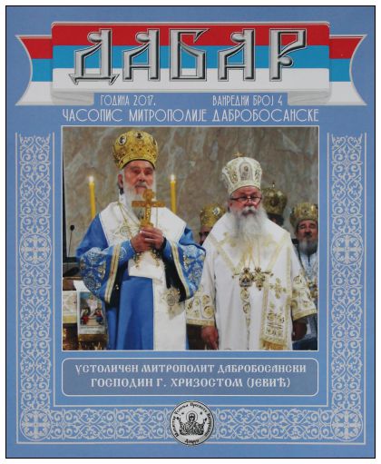 Ново Горажде - Археолошка истраживања, која су по одобрењу Републичког Завода за заштиту културно историјског и природног наслијеђа из Бања Луке, обавили стручњаци музеја „Херцеговина“ из Требиња и „Семберија“ из Бијељине, потврдила су досадашња сазнања да је прва штампарија на просторима БиХ, а друга на Балкану, која је од 1519. до 1523. године радила у порти цркве Светог Ђорђа у Доњој Сопотници код Новог Горажда, била смјештена у тадашњим манастирским одајама. 29.09.2017. У РУДОМ ПРОСЛАВЉЕНИ СВЕТИ МАКАРИЈЕ СОКОЛОВИЋ 13. септембра 2017. године новоизграђени храм Светих Новомученика Јасеновачких у селу Обрвена је прославио своју крсну славу. 28.09.2017. СЛУЖЕНА СВЕТА АРХИЈЕРЕЈСКА ЛИТУРГИЈА У ХРАМУ РОЂЕЊА ПРЕСВЕТЕ БОГОРОДИЦЕ У ЗЕНИЦИ НА ПРАЗНИК ВОЗДВИЖЕЊА ЧАСНОГ КРСТА Његово Високопреосвештенство Митрополит дабробосански Господин Господин Хризостом на празник Воздвижења Часног Крста – КРСТОВДАН, служио је Свету архијерејску Литургију у храму Рођења Пресвете Богородице у Зеници. 26.09.2017. БРАТСКИ САСТАНАК СВЕШТЕНСТВА МИТРОПОЛИЈЕ ДАБРОБОСАНСКЕ Његово Високопреосвештенство Митрополит дабробосански Господин Господин Хризостом је дана 25. септембра године Господње у Палама одржао први братски састанак са монаштвом,свештенством и ђаконима повјерене му Митрополије дабробосанске. 25.09.2017. ЊЕГОВО ВИСОКОПРЕОСВЕШТЕНСТВО МИТРОПОЛИТ ДАБРОБОСАНСКИ Г.Г. ХРИЗОСТОМ ПОСЈЕТИО ХРАМ УСПЕЊА ПРЕСВЕТЕ БОГОРОДИЦЕ У ТРАВНИКУ