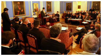 13.12.2017. ХИТНО ОДРЖАНА ВАНРЕДНА СЈЕДНИЦА ЕПАРХИЈСКОГ САВЈЕТА МИТРОПОЛИЈЕ ДАБРО-БОСАНСКЕ Јуче је, 12. децембра 2012. године, у згради Митроплије у Сарајеву одржана ванредна сједница Епархијског савјета митроплије дабро-босанске. Осим чланова Епархијског савјета сједници су присутвовали и позвани грађани Сарајева и сусједних општина. Разлог хитног и ванредног сазивања Епархијског савјета јесу објављене информације да Кантонална влада Кантона Сарајево намјерава да поруши 13 000 надгорних споменика и гробова на гробљима на Кошеву и другим сарајевским гробљима. 12.12.2017. МИТРОПОЛИТ ХРИЗОСТОМ НА ОБИЉЕЖАВАЊУ Данас је, 12. децембра 2017. године, у Сарајеву на Скендерији у организацији Архива БиХ-не уприличено обиљежавање 70 година постојања и рада ове значајне институције. Цијенећи велики значај који има Архив БиХ-не, а и сам заљубљеник у архив, обиљежавању је присутвовао Високопреосвећени г.г. Хризостом, митрополит дабро-босански, којег је врло срдачно дочекао и поздравио Директор Архива г. Саша Клепић. 12.12.2017. ДУХОВНИ РАЗГОВОРИ У ОРГАНИЗАЦИЈИ ПАРОХИЈЕ КОТОРАЧКЕ И у овом вишедневном посту, у организацији Парохије которачке, свештеници ће са вјернима разговарати о различитим темама из живота Цркве.То је својеврсно општење и наставак Свете Литургије, а Православни наше заједнице поменуто са изузетном радошћу ишчекују. 10.12.2017. МИТРОПОЛИТ ХРИЗОСТОМ НА РАВНОЈ РОМАНИЈИ Данас у 27. недјељу по Духовима, 10. децембра 2017. године, на дан успомене св. мученика Јакова Персијанца и светог Јакова Ростовског, Његово Високопреосвештенство г.г. Хризостом, митрополит дабро-босански, служио је свету арх. литургију у саборном храму св. великомуч. Георгија истоименог манастира на Равној Романији. Са Високопреосвећеним г.г. митрополитом саслуживали су: протојереј-ставрофор Ненад Тупеша, протојереј Миљан Рађеновић, јереј Дејан Бакмаз, јереј Дражен Делић и ђакон Будимир Гардовић. На крају свете литургије Високопреосвећени је благословио славско жито и преломио славски колач, а поводом скорашњег имендана настојатеља ове свете обитељи архимандрита Андреја Ковачевића. 08.12.2017. МИТРОПОЛИТ ХРИЗОСТОМ ПРИМИО У АУДИЈЕНЦИЈУ Данас је, 8. децембра 2017. године, Његово Високопреосвештество г.г. Хризостом Митрополит дабро-босански примио у аудијенцију Господина Георгиоса Илиопулоса, Амбасадора Републике Грчке у Сарајеву. 08.12.2017.