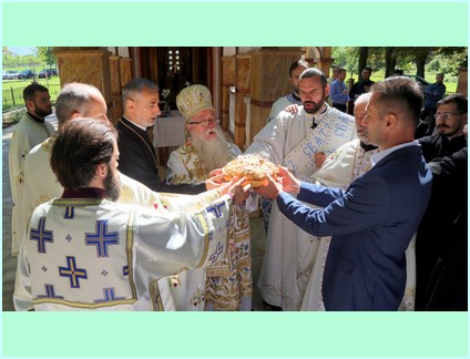 Због услова пандемије ковида-19 и малог габарита самог параклиса света литургија је служена на отвореном, тачаније у ексонартиксу параклиса. На крају свете арх. литургије благословљени су и освећени славско кољиво и славски колач који је са домаћином Господином Црњаком преломио Високопреосвећени Господин Митрополит.
