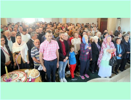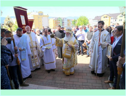 На крају свете литургије Високопреосвећени митрополит је преломио славски колач и осветио славско кољиво, а након чега је обављен и трократни опход око храма.
