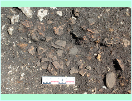 Посебно откриће евидентирано је у сонди 2 уз сјеверни бедем. Већ у првом откопном слоју наишло се на остатке поднице формиране од резаних камених плоча. Правилно поредане камене плоче од муљике са траговим обраде указале су на постојање објекта. Плоче квадратног облика уклапане на нивелисан терен са кориштењем само танког слоја малтерне подлоге. Углови и странице објекта су формиране од аморфног камења и указују на темељне зоне које су послужиле за конструкцију дрвеног објекта. Спорадични су и пронађени остаци дрвене грађе у трагови, но свакако довољни узроци који ће послужити за детаљну анализу у прецизном датирања.