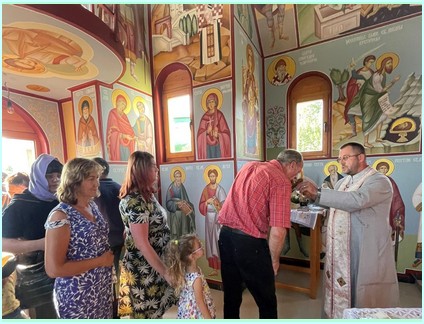 Свету Литургију, која је почела у 11.00 часова, служио је јереј Дејан Ђуричић који је у својој бесједи подсјетио вјернике на значај, силу и улогу Духа Светога у стварању свијета и у животима свих нас. Свештеник је у бесједи истакао да Дух Свети оживотворава сву природу, као и сваког човјека који је најсавршеније створено биће на Земљи, и да је без Духа Светога немогуће направити ни један корак у овоме свијету.