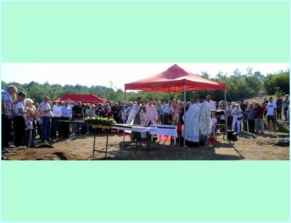 У СЕЛУ РОМАНИ КОД КАЛИНОВИКА ОСВЕЋЕНО ЗЕМЉИШТЕ ЗА НОВИ ХРАМ И ПОБОДЕН КРСТ НА МЈЕСТУ БУДУЋЕГ ОЛТАРА