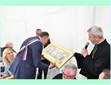 20. 08. 2022. ПРЕОБРАЖЕЊЕ У НОВОМ САРАЈЕВУ - ПОФАЛИЋИМА У храму Преображења Господњег у Новом Сарајеву, свечано је прослављена крсна слава. Светом Литургијом, са почетком у 09:00 часова, по благослову Његовог високопреосвештенства митрополита дабробосанског господина Хризостома, началствовао је архијерејски намјесник сарајевски протојереј-ставрофор Чедо Ђуреиновић. Њему су саслуживали: протојереј – ставрофор Ранко Билинац, протојереј Тихомир Мотика, протојереј Милорад Милинковић и протонамјесник Душко Лаловић. Лијепим појањем свечаност је украсио хор „Слога“. Послије замвоне молитве обављен је славски обред и освећено грожђе. Светој тајни причешћа приступио је велики број вјерника. Кум ове године био је господин Милорад Додик. На крају Свете литургије веома надахнутом бесједом обратио се архијерејски намјесник сарајевски протојереј Чедо Ђуреиновић, у којој је у име Његовог високопреосвештенства митрополита дабробосанског господина Хризостома бираним ријечима поздравио кума овогодишњег славља господина Милорада Додика и све госте. У име Црквене општине Долачке и вјерног народа господина Милорада Додика и све госте поздравио је и старјешина храма Светог Преображења, протојереј – ставрофор Чедомир Ђелмо. Дио славског колача овогодишњи кум господин Милорад Додик предао је господину Милану Браловић, који је изразио жељу да кумује следеће 2023. године. Обављен је трократни обход око Храма; народу је подјељено освећено грожђе, као и славски колач и жито а потом је уследила трпеза љубави. Протојереј-ставрофор Чедомир Ђелмо ФОТОГАЛЕРИЈА
