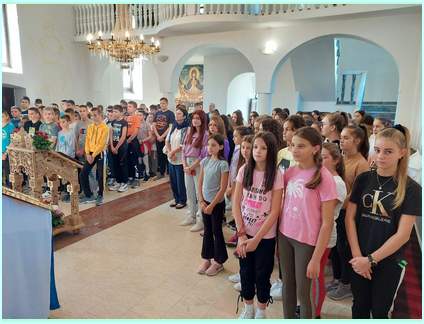 07. 09. 2022. ПРИЗИВ СВЕТОГ ДУХА НА ПОЧЕТКУ ШК. 2022/23. ГОДИНЕ У БРАТУНЦУ У сриједу, 7. септембра 2022. године, у храму Успења Пресвете Богородице у Братунцу обављен је чин призива Светога Духа на почетку нове школске године, који је служио протојереј-ставрофор Борислав Тодић. Храм су испунили ученици Основних школа „Бранко Радичевић“, „Вук Караџић“ и Средњошколског центра „Братунац“. Након призива Светога Духа, отац Борислав се обратио сабраним ученицима. У својој бесједи пожелио им је благословену и успјешну нову школску годину, да се труде у напредовању, те да им Бог подари мудрости, здравља и љубави у њиховом школовању. Након бесједе, уприличено је послужење за ученике и подјељени скромни дарови. ђакон Милош Илић ФОТОГАЛЕРИЈА |