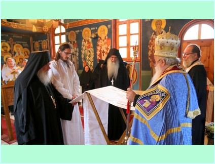 Жудећи за духовним животом и тражећи мир у овом немирном свијету, а прије свега тражећи спасење у Христу Господу, отишао је на Свету Гору, у манастир Хилендар, у ком је као искушеник манастира провео неколико година. Из манастира Хилендара дошао је у хилендарски метох код Београда, манастир Сланце. На приједлог Високопреосвећеног Господина Хризостома дошао је у манастир Добрунска Ријека у ком је вечерас примио монашки постриг.