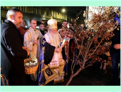 На крају вечерња Високопреосвећени је благословио бадњак у самом храму, честитао свима бадње вече и пожелио срећан Божић. Након обраћања Високопреосвећеног Господина Митрополита кренула је литија бадњака из храма до ватре на коју је бадњак наложио сам Господин Митрополит.