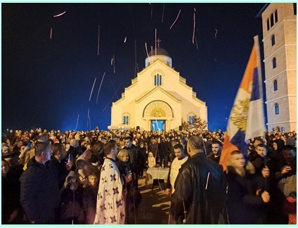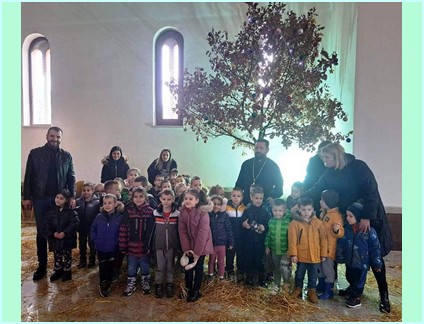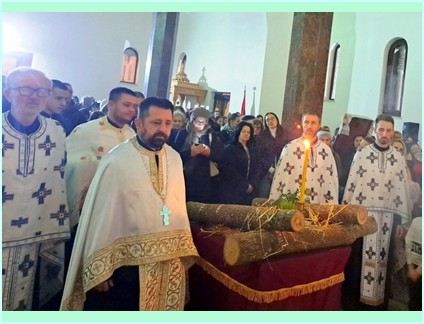08. 01. 2024. Бадње вече и Божић у Андрићграду Божићне свечаности у Андрићграду почеле су 5. јануара, када је храм Светог кнеза Лазара угостио кориснике обданишта "Невен" из Вишеграда. Након посјете храма, заједно са свештеником протојерејем-ставрофором Драганом Вукотићем посјећено је обданиште гдjе су корисници припремили приредбу у част празника. Управа храма Светог кнеза Лазара даровала је 126 пакетића малишанима из обданишта. На Бадње вече, бадњаци су дочекани испред комплeкса Андрићграда, а вечерње богослужење почело је у 19:00 часова. Након вечерњег богослужења за најмлађе организовано је пијукање, а потом су наложени бадњаци у присуству великог броја вјерног народа. Пригодну бесједу одржао је протојереј-ставрофор Драган Вукотић. Божићна Литургија почела је у поноћ, а служили су: пртојереј-ставрофор Драган Вукотић, протојереј Средоје Андрић, протојереј Михаило Андрић, јереј Константин Самоуковић и ђакон Василије Пајевић. На Литургуји је прочитана Божићна посланица, а присутвао је велики број парохијана. Истог дана на Божић вече у 18:00 часова након вечерњег богослужења организовано је ломљење божићне чеснице гдје је учествовао велики број дјеце. Златник је припао Ђорђу Васиљевићу, сребрењак Магдалени Остојић, обоје из Вишеграда, а храм је припремио још три награде. Златник је обезбједила Општина Вишеград, сребрењак златара „Кнежевић“, док је пекара "Переца" из Вишеграда направила чесницу. протојереј-ставрофор Драган Вукотић ФОТОГАЛЕРИЈА