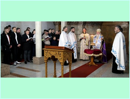 На крају вечерња Високопреосвећени је поздравио ректора, професоре и ученике богословије и честитао им Српску Славу Светитеља Саву, покровитеља свих српских школа. У наставку бесједе потсјетио их је на величину личности Светитеља Саве кроз вијекове и истакао: '' ....из захвалности за све оно што је он учинио за нас, за наше свете претке и за оне који ће послије нас доћи, ми Српски народ, његово духовно потомство, створили смо своју националну ортодоксију, наше српско православље, које називамо СВЕТОСАВЉЕМ! .... И као што је сваки човјек различит тако су и сви народи међусобно различити. У сјенци тих различитости сваки народ је ''изродио'' и своју вјерску традицију, обичаје и укомпоновао их у хришћанско вјеровање, управо онако како је и св. Василије Велики писао младима да све оно што је јелинско добро и племенито охристове, а све оно што је дисидемонисјко одбацимо...... Управо је то учинио Свети Саве и нас, овакве какви јесмо Срби, Словени, охристовио и засадио као питома стабља у божански рукосад. Плод тога је наше свето СВЕТОСАВЉЕ.....'