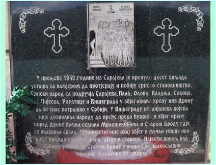 Потсјећања ради, у рано прољеће 1942. године, усташка команда за Босну под заповједништвом злогласној усташе Јуре Францетића покренула је масовни погром етничког чишћења Српског народа Сарајевског поља и Романијских општина. Да би се склонио од усташке офанзиве Српски народ је кренуо ка ријеци Дрини с намјером да пређе Дрину и склони се у Србију. Народ у збјегу сустигле су организоване и добро наоружане усташа ( муслимани и хрвати) и у неколико дана масакрирали и побили, у ладну ријеку бацили хиљаде невине дјеце, жена, старица и стараца. То је злочин геноцида којег су комунистичке власти строго прикривале и немилосрдно кажњавали свакога ко би о њему проговорио.