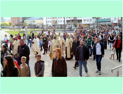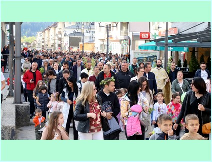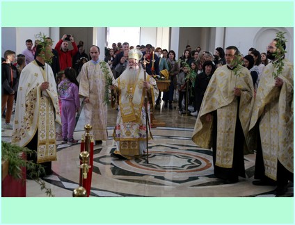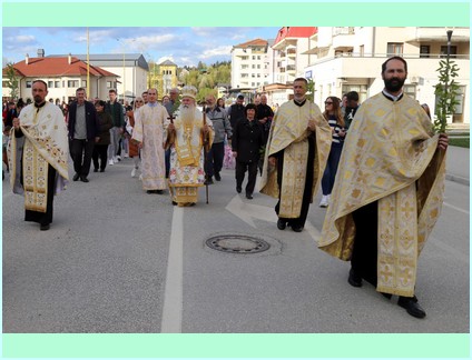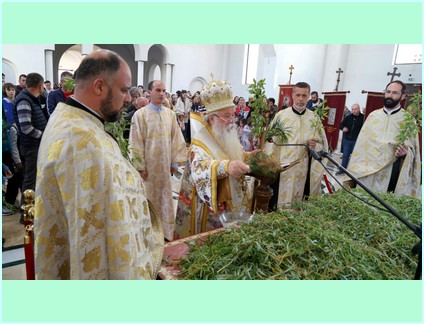 У свом празничном обраћању Високопреосвећени је свима окупљенима честитао наступајући празник Цвијети - Уласка Господа Исуса Христа у свети град Јерусалим и пожелио им да исто овако дочекају и прославе и празник Васкрсења Господа Исуса Христа и истакао ''..... како мала дјеца Јерусалима осјетише у срцима својим да њихов Цар долази и тражаху од својих родитеља да их поведу или изнесу на улице Јерусалима да би из својих дечијих грла, њиховим дјечијим гласовима клицали и викали: осана, осана, благословен који долази у име Господње! ..... Уистину је величанствена икона овог празника. Паралелно са овом дивном иконом (сликом) видимо безазлену дјецу Јерусалима, како чистих срца и просвјећена ума препознају и дочекују Месију - Исуса Христа, гле, с друге стране видимо књижевнике, фарисеје, садукеје и сав Синедрион како смишљају како да убију тог истог Месију и Лазара којег васкрсе у Витанији. .......... Али, Господ долази у Јерусалим да својим страдањем на Голготи сатре сатану, гријех и смрт......''