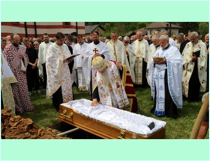 На дан сахране у храму Светог Великомученика Георгија у Миљевићима у Источном Новом Сарајеву у 10:00 часова служена је заупокојена литургија, а са почетком у 12:00 часова Високопреосвећени Господин Хризостом, митрополит дабробосански са мноштвом свештеника служио је опјело.