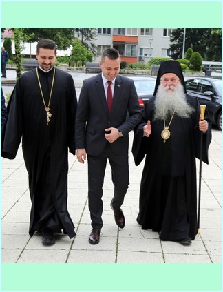 У свечаном дијелу ове сједнице начелник општине Фоча Господин Милан Вукадиновић уручио је Високопреосвећеном Господину Хризостому митрополиту дабробосанскому грамату ПОЧАСНОГ ГРАЂАНИНА ОПШТИНЕ ФОЧА