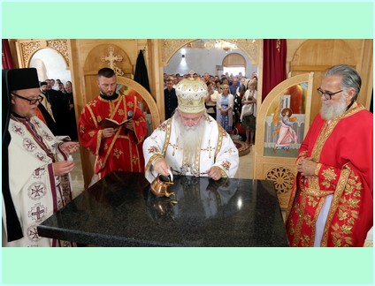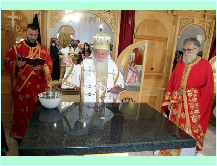 Освећење је обавио Високопреосвећени митрополит Господин Хризостом а уз саслужење: архимандрита Андреја, настојатеља манастира Светог Георгија на Равној Романији, протојереја-ставрофора Рајка Цвјетковића и Горана Терзића, јеромонаха Романа, сабрата манастира Острога и ђакона Василија Пајевића. Након освећења храма чином троносања Високопреосвећени је служио свету арх. литургију и проповједао ријеч божију.
