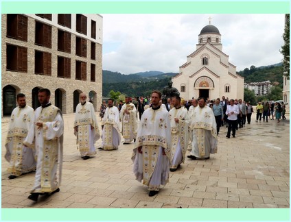Након свете архијерејске литургије благословљени су славски дарови (колач и кољиво). У наставку свечаности кранула је литија од храма Светог кнеза Лазара до споменика свим јунацима од Косова до дана данашњега палим на бојном пољу на градском тргу гдје је отслужен помен за све војсковође и војнике пале за крст часни и слободу златну.