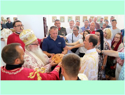 Након свете литургије Високопреосвећени је благословио празничне даров - славски колач и славско кољиво које је по обичају и традицији припремио кум данашње славе храма св. ап. Петра и Павла у Кравици. У наставку обвљена је литија око светог храма и благослов храма, села и вјерног народа