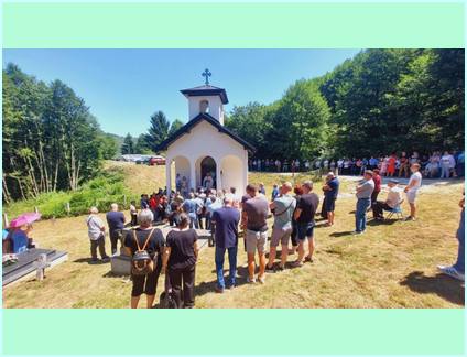 28. 07. 2024. Освећење капеле Св. великомученика Георгија у Засељу код Витеза Данас, 27.07.2024. године по благослову Митрополита Дабро-босанског Господина Г. Хризостома обављено је освећење капеле Светог великомученика Георгија у Засељу код Витеза. Капела је изграђена на мјесном горбљу које датира преко четири стотине година о чему нам свједоче стари споменици. Поред капеле у Толовићима која је изграђена седамдесетих година, ова капела је други православни вјерски објекат на подручју општине Витез. Идеја за градњу капеле потекла је од некадашњих мјештана овог села који су уз помоћ општине Витез, привредника и мјесштана села Горње и Доње Вечерске успјели у кратком времену идеју претворити у дјело и за свега два мјесеца изградити капелу. Освећење су обавили парох бугојански протојереј-ставрофор Славиша Ђурић, парох травнички протојереј- ставрофор Горан Живковић и протојереј Марко Малеш парох прве парохије зеничке. За кума капеле изабран је Никола Ћато из Витеза који је и најзаслужнији за изградњу исте. Освећењу је присуствовао велики број вјерника као и жупник витешке жупе фра Велимир Баврка и начелници општина Витез и Нови Травник Господин Борис Марјановић и Господин Стјепан Дујо. Након молитвеног дијела весеље је настављено уз трпезу љубави коју су припремили домаћини и гдје су заслужним подијељене захвалнице. Парох травнички ФОТОГАЛЕРИЈА |