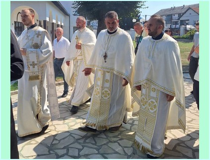 14. 08. 2024. ПРОСЛАВА СВЕТИХ МУЧЕНИКА МАКАВЕЈА У БРАТУНЦУ Данас у сриједу, 14. августа 2024. године, велики број вјерника традиционално се окупио у храму Успења Пресвете Богородице у Братунцу како би молитвено и литургијски прославили свете мученике Макавеје. Свету литургију са почетком у 10:00 часова служио је протојереј-ставрофор Љубиша Вијичић, парох милићки, уз саслужење протојереја Александра Млађеновића, пароха сребреничког, јереја Дејана Ђуричића, пароха кравичког и ђакона Милоша Илића. Пригодном бесједом присутном народу обратио се протојереј-ставрофор Љубиша Вујичић. Након свете литургије обављена је трократна литија око светог храма и благословљен је по овдашњем обичају тамјан, који је подијељен народу. На крају свечаности уприличена је трпеза љубави за присутне. ђакон Милош Илић ФОТОГАЛЕРИЈА