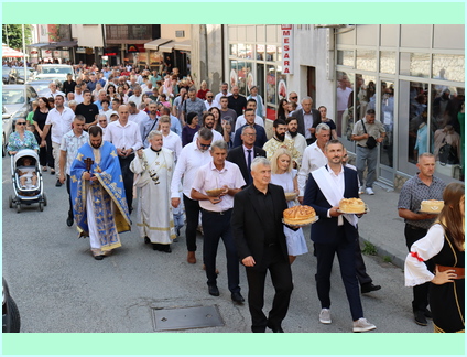 29. 08. 2024. Успење Пресвете Богородице – храмовна слава у Чајничу Празник Успења Пресвете Богородице свечано је прослављен у Чајничу. Већ, уочи самог дана празника окупио се велики број вијерника и присуствовао празничном бденију и вечерњој трпези љубави. Вијерни народ је допутовао из разних крајева да се поклони чудотворној икони Чајничкој Красници чији спомен се прославља на овај велики дан. Поклоници у већим групама су стигли из Трстеника, Пљеваља, Фоче, Јагодине и Приједора како би добили духовну утјеху и Божији благослов. Светој литургији началствовао је протојереј-ставрофор Љубомир Пријовић, ректор Богословије „Свети Петар Дабробосански“ у Фочи, а њему су саслуживали: протојереј-ставрофор Момир Васиљевић, протојереј-ставрофор Драгиша Симић, јереј Дамјан Радовић, ђакони Младен Максимовић и Угљеша Скоко. Након прочитаног јеванђеља протојереј-ставрофор Љубомир Пријовић, честитао је вијерницима празник и истакао: „...да нико више у историји рода људског није био удостојен толике благодати као што је била Пресвета Богородица, која је удостојена да се пројави Богородицом, да носи у утроби својој Господа Исуса Христа. Никоме толико у историји човјечанства није упућено пјесама и молитава, и никоме није подигнуто толико велељепних храмова као Пресветој Богородици, а један од тих је и овај дивни храм у Чајничу у коме се већ скоро пет вијекова чува чудотворна икона Красница, која је наша заштитница и помоћница.“ Након свете литургије обављена је свечана литија око храма и улицама Чајнича. По повратку у храм благословено је славско кољиво и преломљени славски колачи, а затим је у порти храма за све присутне уприличен славски ручак. Ђакон Угљеша Скоко ФОТОГАЛЕРИЈА