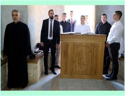 02. 09. 2024. ПРИЗИВ СВЕТОГА ДУХА НА ПОЧЕТКУ НОВЕ ШКОЛСКЕ ГОДИНЕ Данас у 10. недјељу по Духовима, 01. септембра 2024. године, и на дан успомене Светога Андреја стратилата и осталих са њим пострадалих, обављен је призив Светога Духа на почетку нове школске године у Богословији Светог Петра Дабробосанског у Фочи. Претходно је служено васкршње јутрење и света архијерејска литургија у храму Светих Василија Острошког и Петра Дабробосанског при Богословији у Фочи. Свету аријерејску литургију служио је Високопреосвећени митрополит дабробосански Господин Хризостом, а уз саслужење високопречасних протојереја-ставрофора проф. др-а: Владислава Топаловића, декана Богословског факултета у Фочи и архијерејског замјеника и Дарка Ђога; протојереја-ставрофора Душана Андрића, арх. намјесника србињског и Љубомира Пријовића, ректора богословије; јереја проф. приправника Милоша Јањића и Вјекослава Јовановића те ђакона Младена Старовића. Након призива Светога Духа Високопреосвећени Господин Митрополит пожелио је ректору богословије, професорима и свим ученицима срећну нову школску 2024/25. годину с молитвама да на крају исте виде добре и благотворне плодове и резултате не само у оцјенама већ на духовном плану. ''...... Сви смо читали, господо професори и драги ученици, како Господ рече својим ученицима и апостолима да остану у Јерусалиму док се не обуку у силу с Висине, док се не обуку у Духа којег ће им послати. Господ их је позвао да иду за њим и они су кренули за њим, слушали науку Његову, гледали велика чуда која је Господ чинио, али су они и даље остали обични галилејски рибари, пуни страха од овога свијета. То се нарочито испољило послије догађаја Великог Петка, када су се разбјежали на све стране, Јуда га издао, а Петар га се одрекао..... Зато је било битно да остану у Јерусалиму док се не обуку у силу с Висине, док не приме Духа Светога . Тек онда ће моћи смјело стати пред све изазове овога свијета..... Тако и ви, драги ученици, дођосте у ову школу, у ову богословију да се овдје слушајући науку господњу, молећи се и живећи у страху господњем, обучете се у ту силу с Висине, оснажите се Духом Светим и будете способни да се у вријеме које Бог одреди и благослови кренете у свијет и свједочите Христа Господа........ Зато отворите умове ваше да науке које вам се буду предавале добро чујете и разумијете. Чувајте ум свој од свега лошег и штетног, а срца своја претворите у ваше мале црквице у којима ћете се са Богом сусретати и молити му се.... Нека вам је срећно и благословено...'' Љетописац РаНиКо ФОТОГАЛЕРИЈА