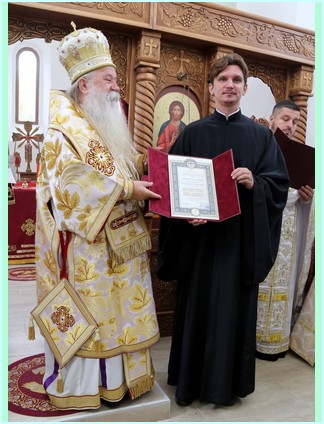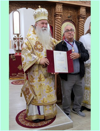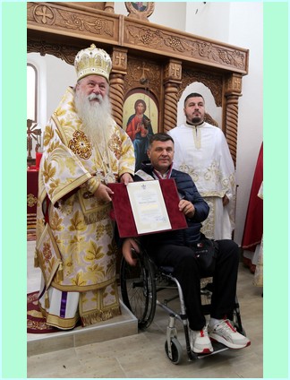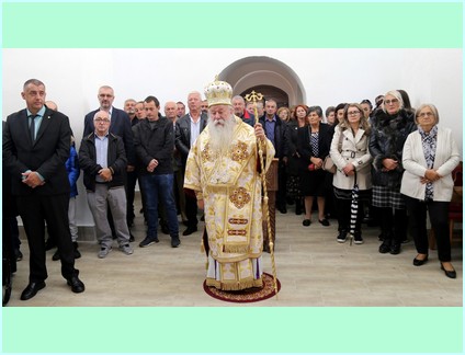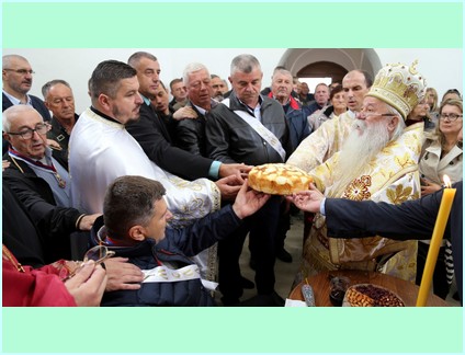 На крају литургије Високопреосвећени је благословио славске дарове- кољиво и славски колач те заслужним за обнову храма уручио ордење Светог Петра дабробосанског, архијерејске похвалнице и грамату Великог добротвора.