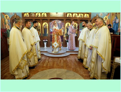 Свету архијерејску литургију служио је Високопреосвећени митрополит дабробосански Господин Хризостом, а уз саслужење: протојереја Евгенија из Краснодара ( Русија), протојереја-ставрофора: Владимира Ступара, Чедомира Ђелме, Дарка Даниловића, јереја: Видака Вујадиновића и Дражена Делића те ђакона Владислава Ковача.