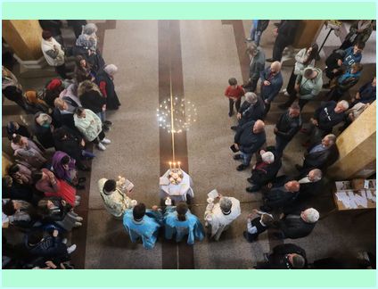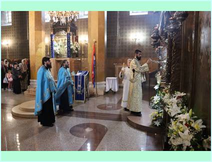 Након свете литургије обављен је трократни опход око храма, а потом је у порти Саборног храма постављено послужење за све поклонике.