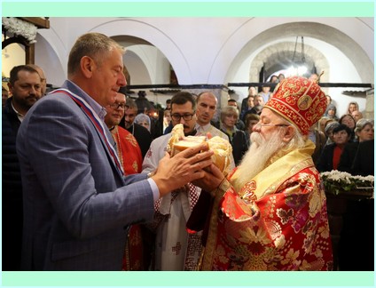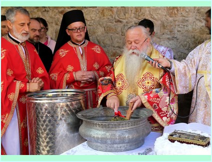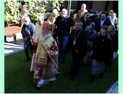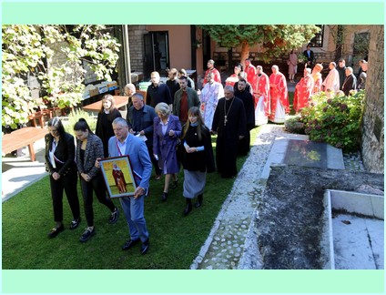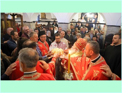 На крају свете архијерејске литургије благословљени слу славски дарови - кољиво и крсни хљеб и обављена је трократна литија око светог храма са руком Свете Текле. На крају трећег литијског опхода Високопреосвећени је освештао воду и благословио обновљени храм и вјерни народ .
