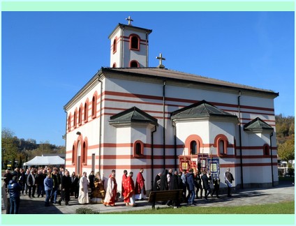На крају свете архијерејске литргије благословљени су славски дарови - кољиво и колач и обављена је славска литија око светог храма. На трећем литијском опходу отслужен је помен покојном проти Војиславу Чаркићу. Нека му је вјечнаја памјат.