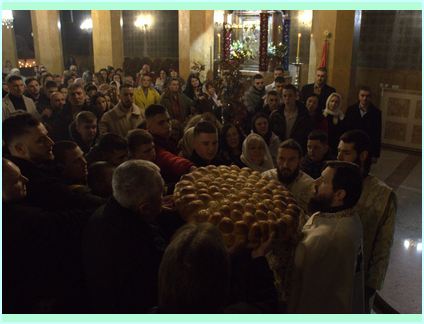 На крају литургије са посебном радошћу је преломљена божићна чесница и подијељена вијерницима уз сверадосни хришћански поздрав: Мир Божији! Христос се роди! – Ваистину се роди!