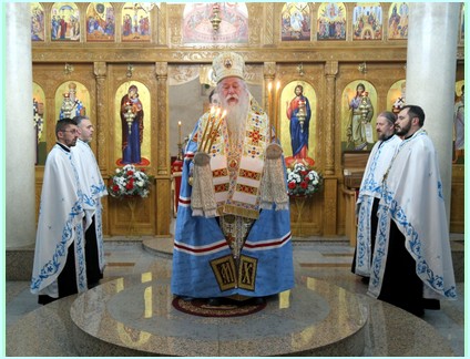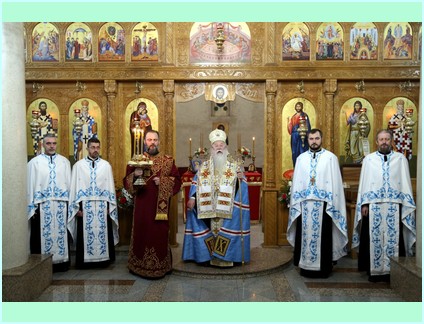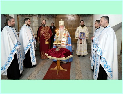 У 18:00 часова отпочело је празнично вечерње са петохљебницом које је служио Високопреосвећени Господин Митрополит уз саслужење: протојереја-ставрофора Љубомира Пријовића, ректора богословије те профосера ове богословије јереја: Милоша Јањића, Ранка Ковача и Синише Божића те ђакона Младена Старовића.