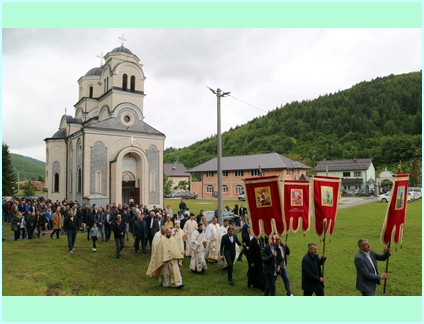 На крају свете архијерејске литургије благословљени су славски дарови кољиво и славски колач. У наставку обављена је литија око светог храма до споемен обиљежја свим погинулим и пострадалим у Првом и Другом свјетском рату и у одбрамбено-отаџбинском рату 1992-1995. године.