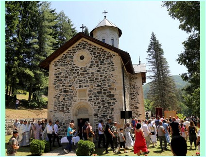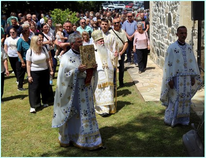 Прије почетка саме свете архијерејске литургије Високопреосвећени Господин Митрополит освештао је новоживописане фреске у храму ове обновљене светиње. Након свете архијерејске литургије обављена је трократна литија око светог храма, а испред самог светог храма Високопреосвећени је освештао славско кољиво и славски колач. Иначе кум овогодишње манастирске славе био је Господин Жељко Павловић са породицом. Кумство за наредну 2026. годину узео је Душко Симић.