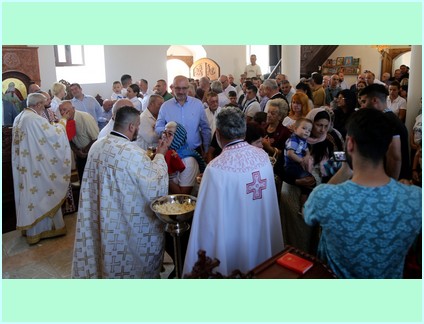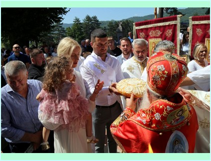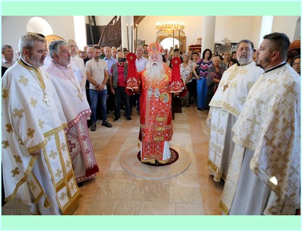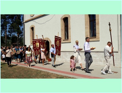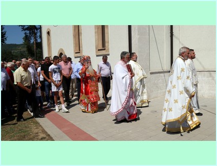 Након свете архијерејске литургије обваљена је трократна литија око светог храма, а испред светог храма благословљени су славски дарови - кољиво и славски колач који је преломљен са кумом данашње крсне славе.