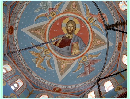 Са настојатељем ове Светопреображаенске светиње архимандритом Кипријаном Топаловићем Високопреосвећени је пажљиво погледао радове на фрескописању ове најновије светиње наше Цркве. У наствку разговарало се о текућим питањима манастира те плановима за изградњу манастирске ограде - зида.