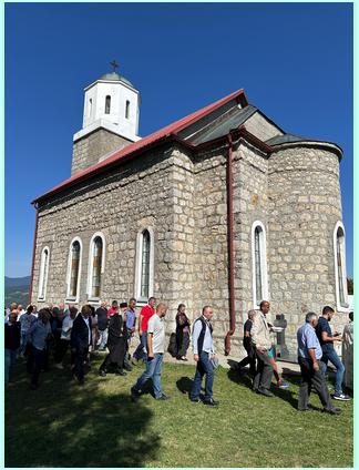 Послије Свете Литургије обављена је трократна литија око храма, помен парастос за све пострадале са тетимске парохије, као и резање славског колача.