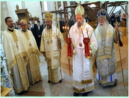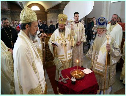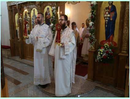 У храму Светих Василија Острошкога и Петра Дабробосанскога при Богословији у Фочи свету архијерејску литургију служио је Високопреосвећени митрополит захумско-херцеговачки Господин Димитрије, а уз саслужење Високопреосвећеног митрополита дабро-босанског Господина Хризостома и Преосвећеног епископа липљанског Господина Доситеја, изасланика Његове Светости патријарха српског Господина Порфирија, те: архимандрита Андреја Ковачевића, настојатеља манастира Равна Романија; протојереја ставрофора Дарка Ђога, декана ПБФ у Фочи; протојереја-ставрофора Предрага Масала, пароха рогатичког; протојереја-ставрофора Зорана Живковића, пароха завидовићког; протејереја-ставрофора Душана Андрића, архијерејског намјесника србињског; протојереја-ставрофора Николе Ковача, пароха паљанског; протојереј Немања Манџића пароха паљанског; јереја Синише Божића, професора Богословије у Фочи; те ђакона: Будимира Гардовића, Младена Старовића и Дејана Ивановића.