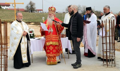Честитајући окупљеним вјерницима прзник Христова Васкрсења – Васкрс и освећење темеља новог храма Високопреосвећени је истакао велики значај од подизања овог новог и првог храма у Подроманији и позвао све присутне да се сви духовно и материјално уграде у овај свети храм и да он буде њихов храм.