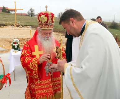 Данас је са почетком тачно у 16:00 часова благословио и освештао нове темеље. У склопу освећења темеља прочитана је повеља о оснивању и освећењу темеља а која је потом положена у саме темеље храма. Кум темеља храма био је Господин Мирко Пандуревић, привредник из Сокоца.