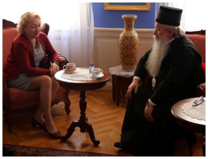 МИТРОПОЛИТ ХРИЗОСТОМ ПРИМИО НА РАЗГОВОР На лични захтјев Госпође д-р Доине Бологе, представнице УНФПА за Босну и Херцеговину, Његово Високопреосвештенство г.г. Хризостом, Митрополит Дабро-Босански примио је исту на разговор у згради Митроплије у Сарајеву, у Четвртак, 26. Октобра т.г. Пријему и сурету присутвовали су и сарадници Госпође Бологе, као и ђакон Немања Васиљевић. У веома пријатном разговору Госпођа Болога је упознала Високопреосвећеног Митроплита са дјелокуругом рада њене канцеларије, а Високопреосвећени митрополит је свесрдно подржао њихов рад и обећао им подршку у будућем раду. |
