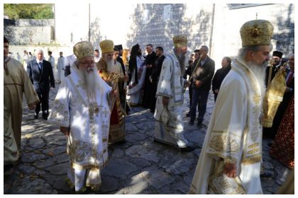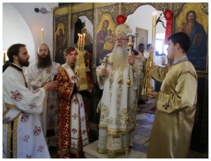 МИТРОПОЛИТ ХРИЗОСТОМ НА ЦЕТИЊУ Поводом крсних слава манастира и богословије ''Свети Петар Цетински'' на Цетињу Његово Високопреосвештенство г.г. Хризостом, Митрополит Дабро-Босански, синоћ је у Понедјељак, 30, октобра о.г. стигао на Цетиње. Високопреосвећени је стигао у току славског бденија које је уз саслужење братије и гостију служио епископ Рашко-Призренски г.г. Теодосије. На крају бденија Високопреосвећени Митрополи Црногорско-Примоски г.г. Амфилохије замонашио је по чину мале схиме једног искушеника овдашњег манастира давши му на монашењу име Лука. На сам дан крсне славе свету архијерејску литургију служили су митрополити г.г. Амфилохије и Хризостом, те епископи Будимљанско-никшићки г.г. Јоаникије, Рашко-Призренски г.г. Теодосије и тимочки г.г. Иларион. Ријеч божију на тему ''диван је Бог у светима својима, Бог Израиљев'' проповједао је Његово Високопреосвештенство г.г. Хризостом, Митрополит Дабро-Босански. На крају свете литургије благословена су кољива и преломљени славски колачи. Народу се потом обратио Митрополит Амфилохије. У трпезарији богословије приређен је славски ручак, а славско кољиво благословио је и славски колач преломио је Његово преосвештенство г.г. Иларион, епископ тимочки. Данас је прва генерација обновљене Цетинске богословије прославила своју 20-годишњицу матуре. |